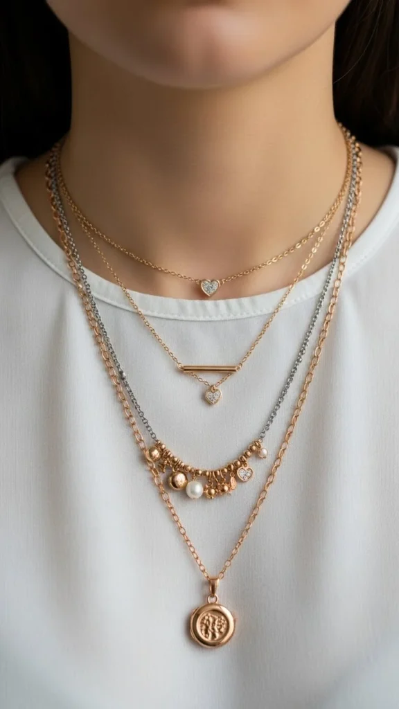 Layered necklaces add interest without effort. Use different lengths. Budget tip: mix pieces you already own.