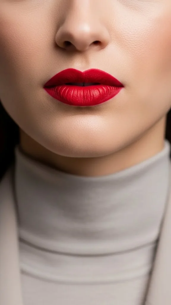 19. Neutral Outfit with Red Lip Makeup