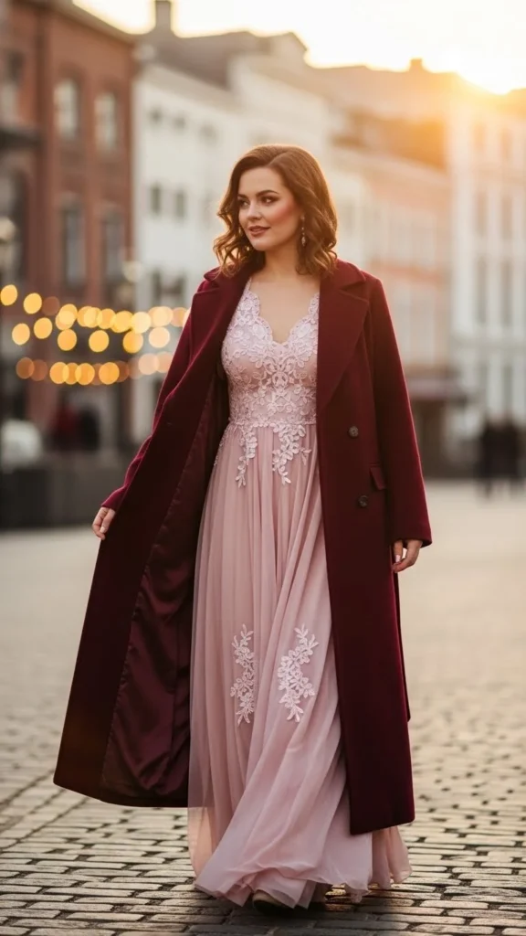 20. Long Coat Over Romantic Dress