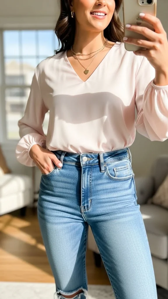 21. High-Waist Jeans and Soft Blouse