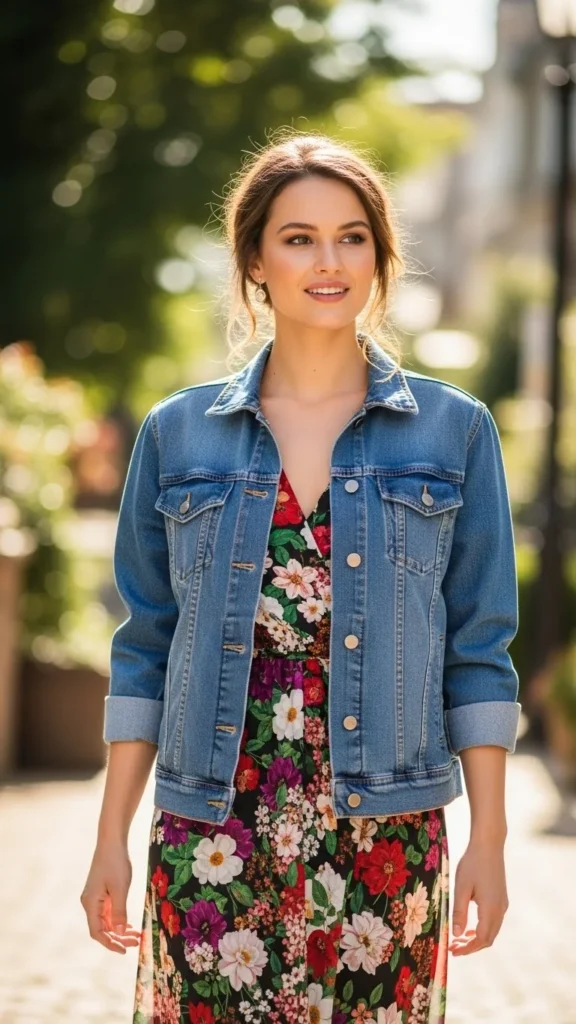5. Floral Dress with Denim Jacket