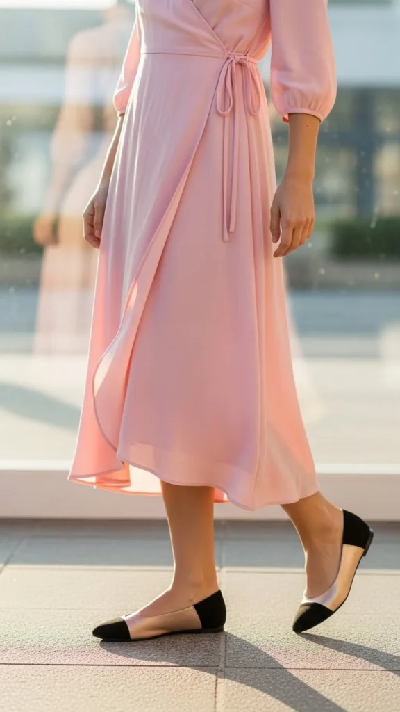 Wrap dresses suit many body types and feel easy to wear. Flats keep the look relaxed. Add a small bag and light jewelry. Budget tip: wrap dresses are easy to find second-hand.