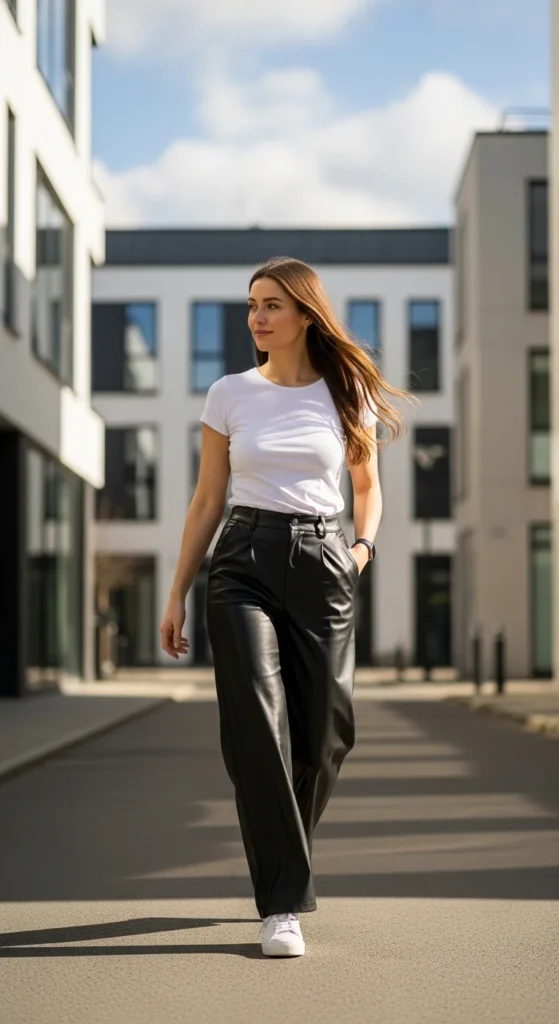 Look 3: Wide-Leg Vegan Leather + Clean Sneakers