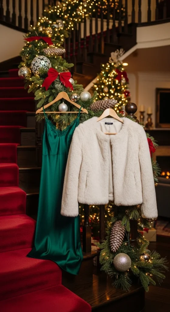 Affordable faux fur options can be found easily in second-hand stores. If you already own a satin nightdress, you can style it as a slip dress by adding a belt. Keep jewelry minimal. A small chain necklace or simple studs are enough. Add heels or soft ballet flats depending on comfort. This outfit works beautifully for an evening dinner or Christmas party, giving a glamorous but not overdone effect.