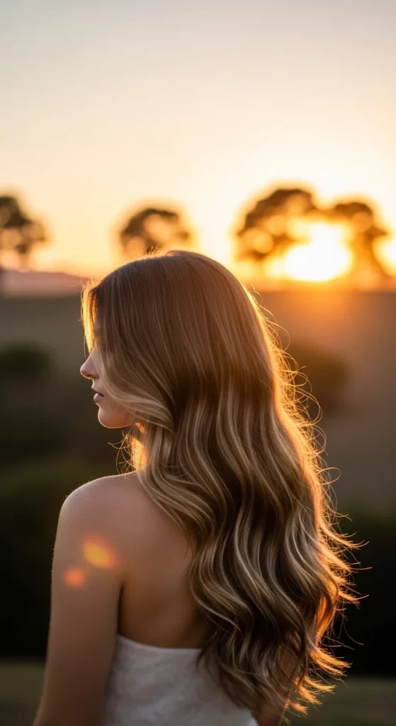 Loose waves show off the color shifts.