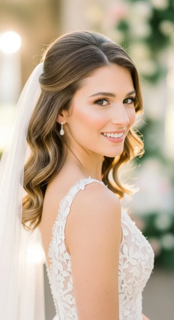 19. Romantic Half-Up Wavy Style