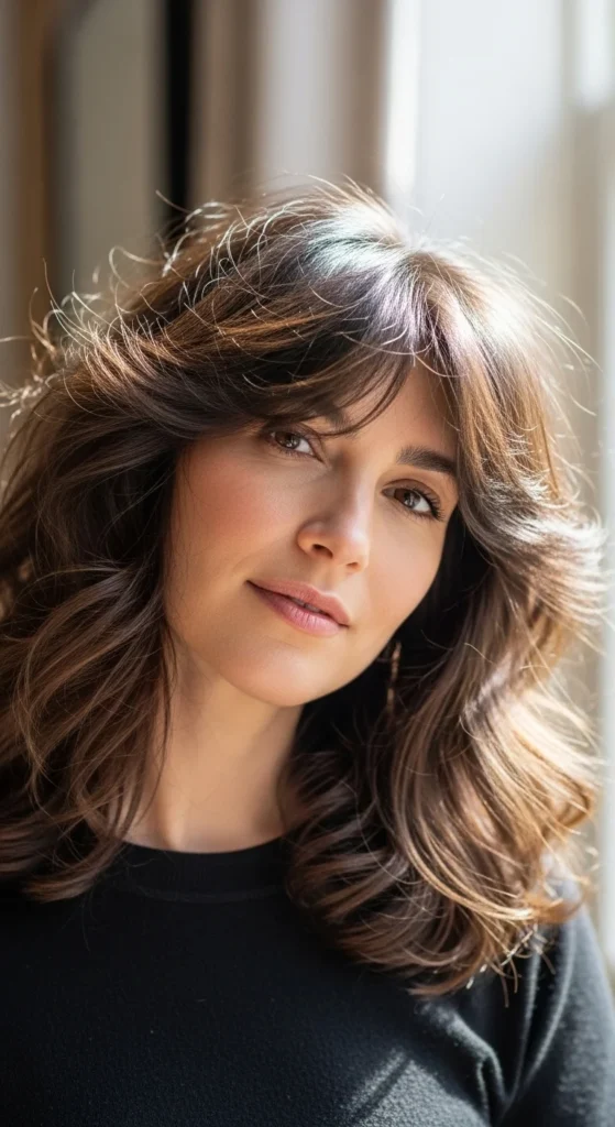 The wolf cut mixes shag layers with soft mullet energy. On wavy hair, it looks effortless.