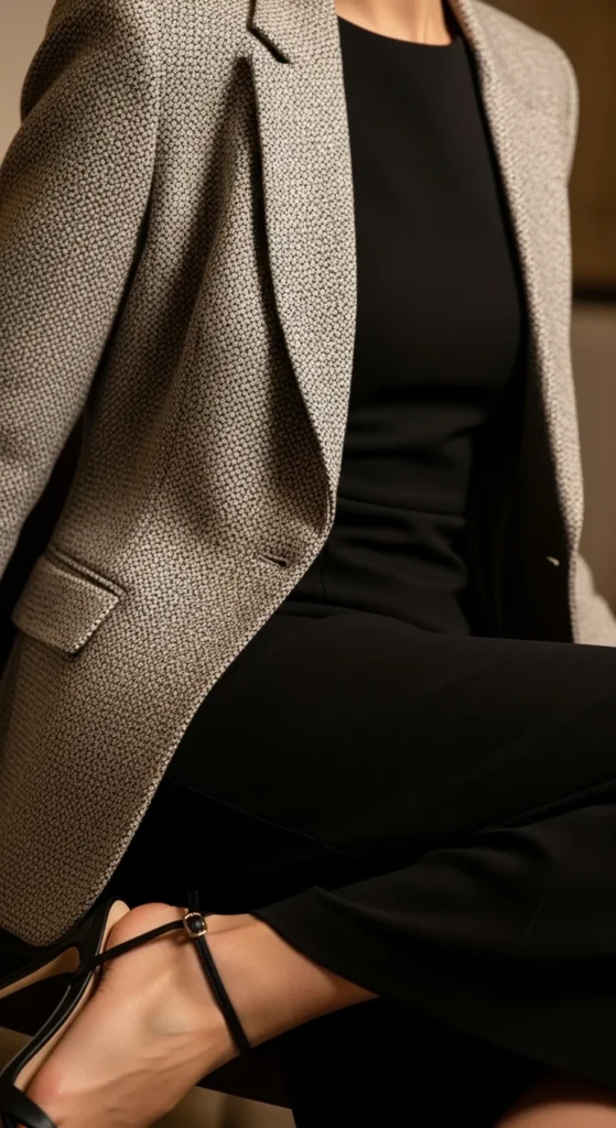 - Keep one hero element: either the blazer texture or the dress silhouette, not both