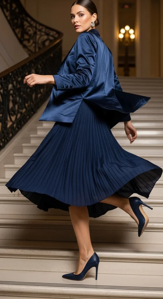 - Semi-formal / cocktail: blazer + dressy dress, skirt set, or elevated separates