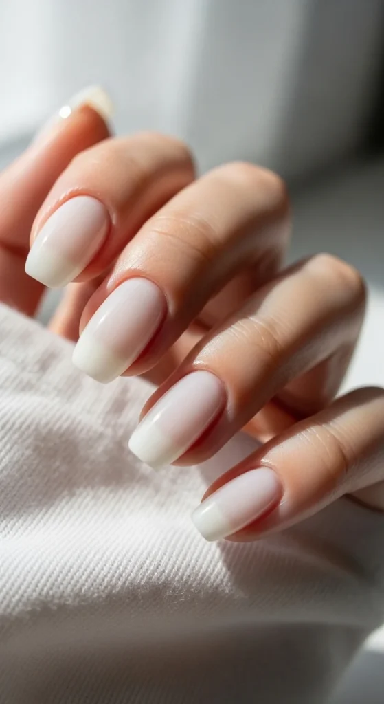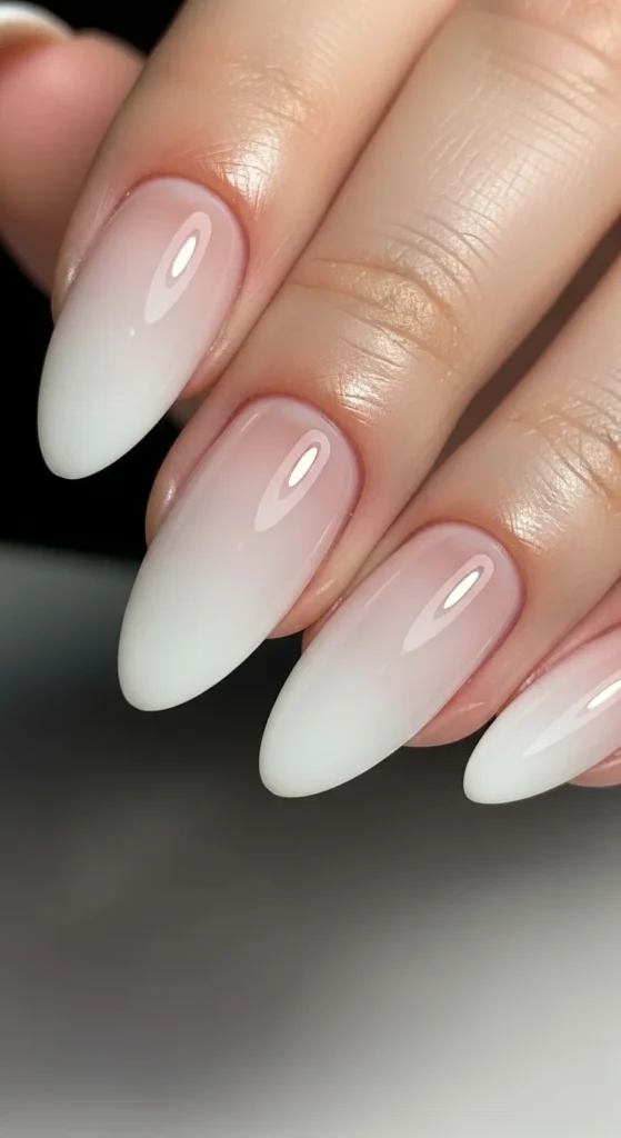 Milky ombre looks soft and elegant. It’s a great choice if you want a white manicure that feels gentle.