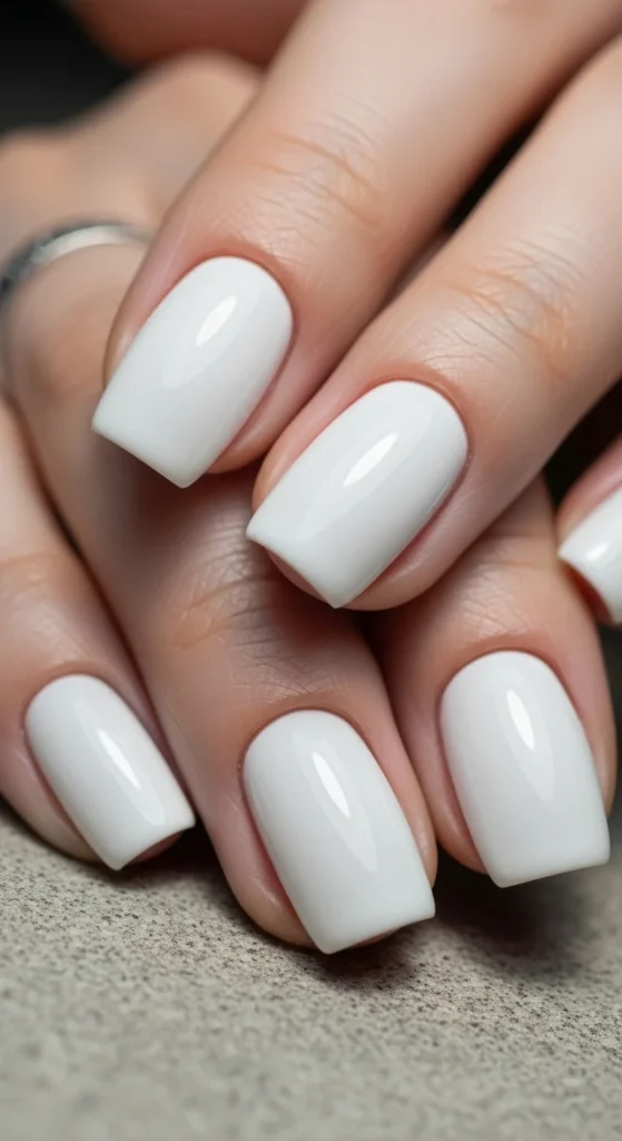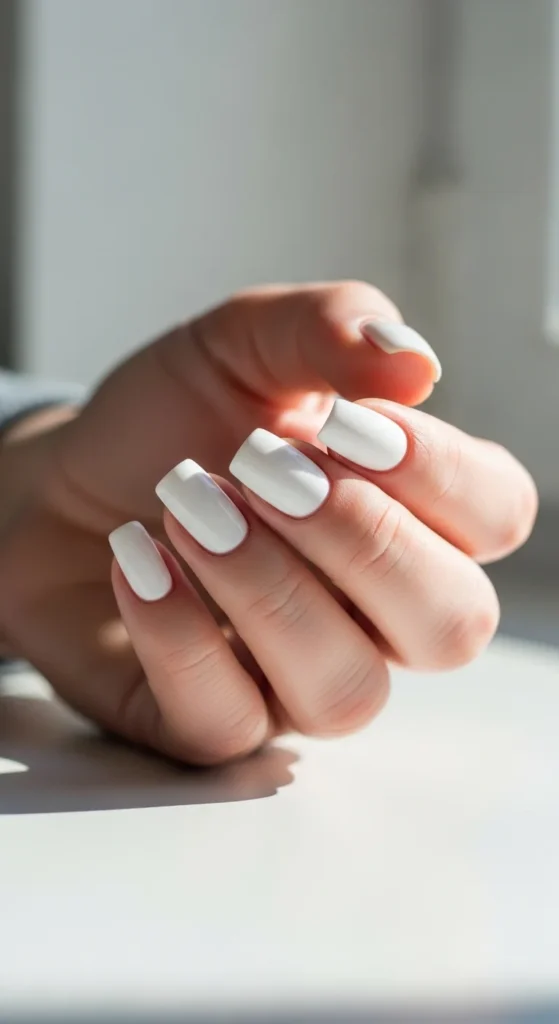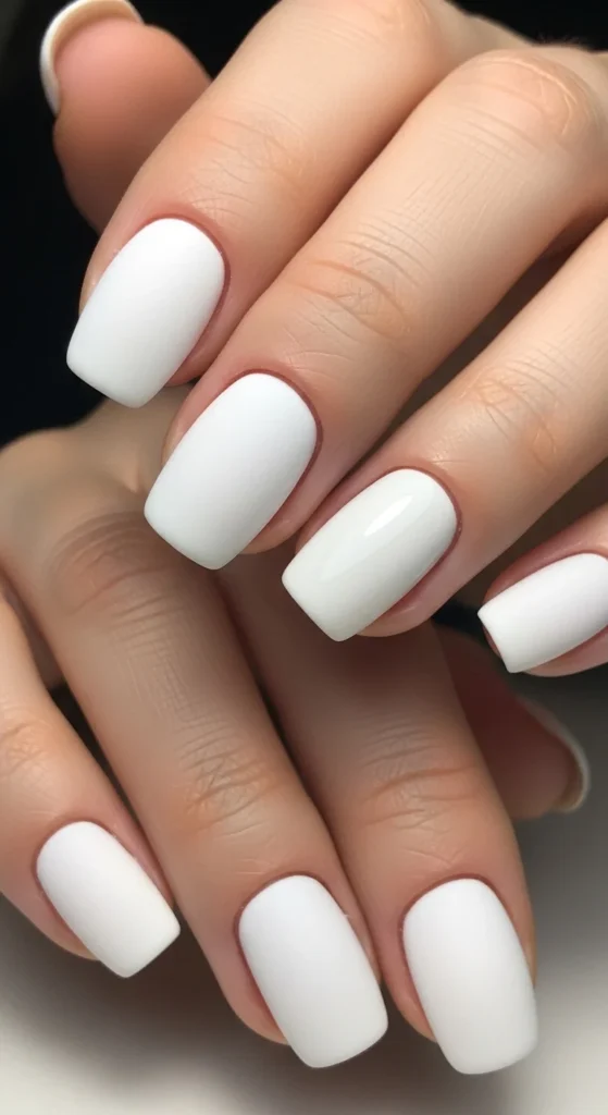 Short square white nails look neat and modern. They are easy to maintain and look polished in work settings.