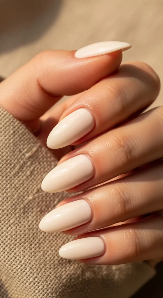 This off-white look feels softer than bright white. It’s perfect if you want a gentle neutral manicure.