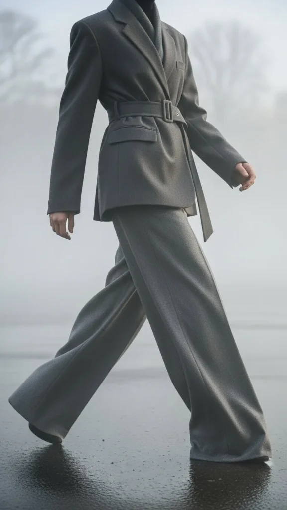 A belt transforms a blazer’s shape. Wide-leg wool pants add volume. This pairing suits meetings or dinners. Choose belts in leather or fabric. Pick pants in deeper tones. Add structured boots to anchor the bottom half.