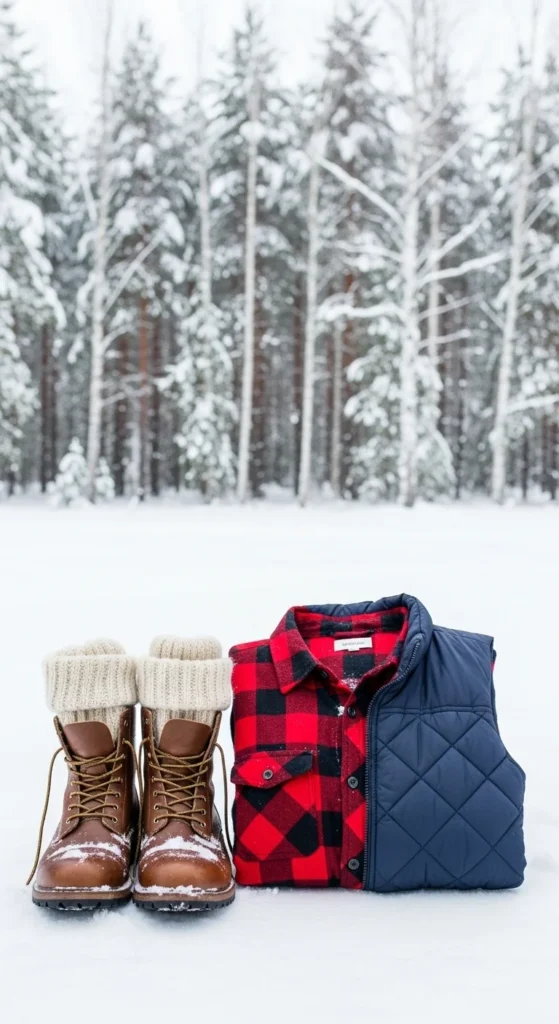 Lace-up boots pair well with a flannel shirt and puffer vest for casual days. Start with jeans or leggings. Choose a flannel in warm tones. If you don’t have a vest, wear a light puffer instead. Add a thermal layer underneath if the temperature drops. This outfit works for outdoor chores, casual outings, or winter markets. You can recreate it easily using budget pieces.